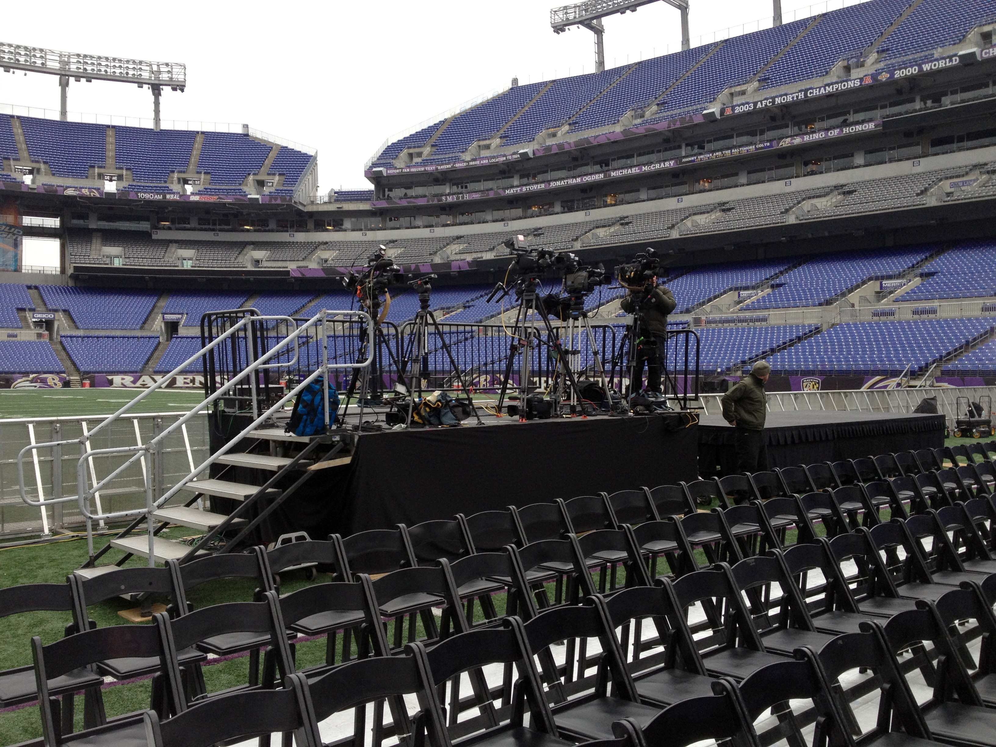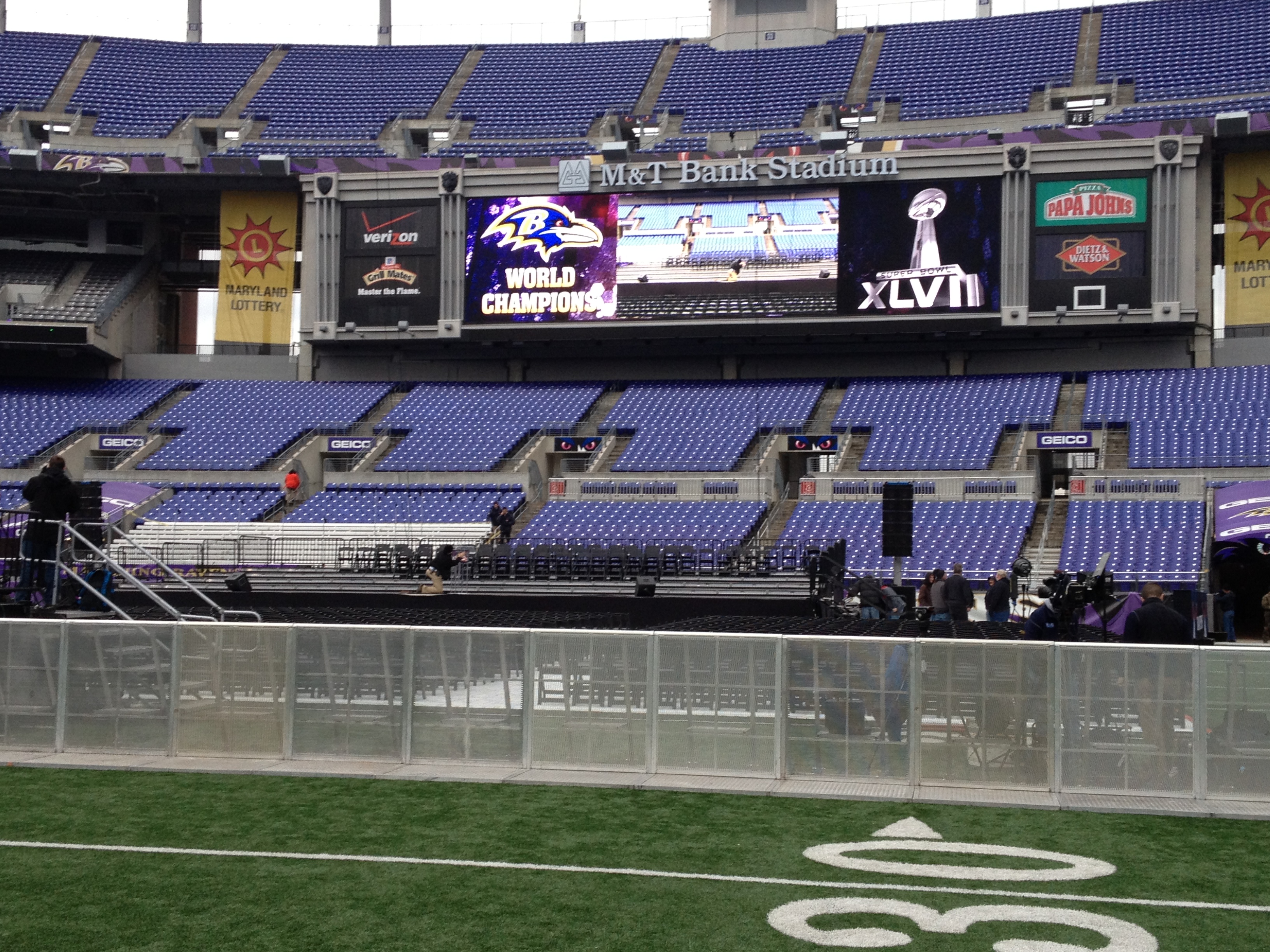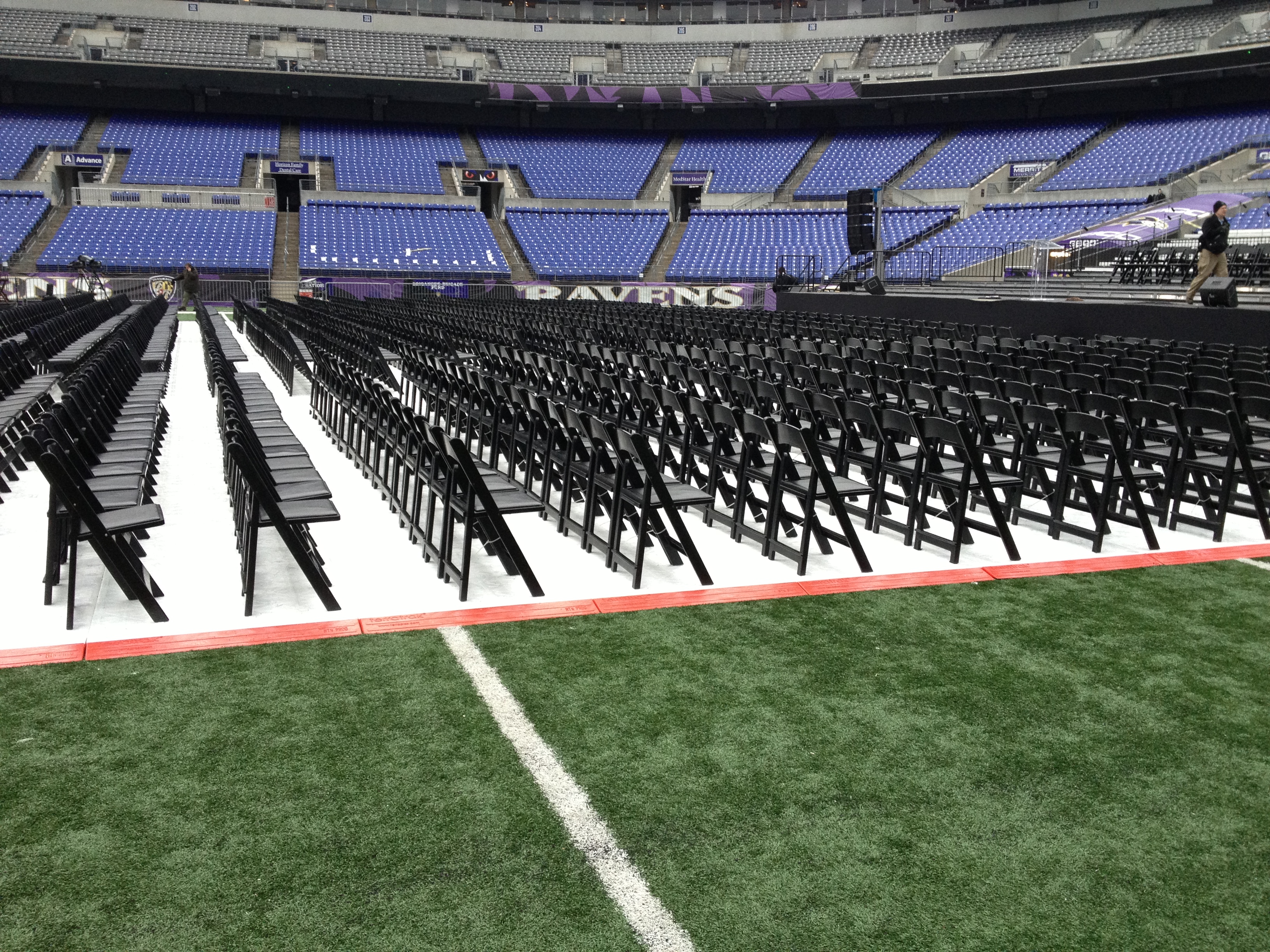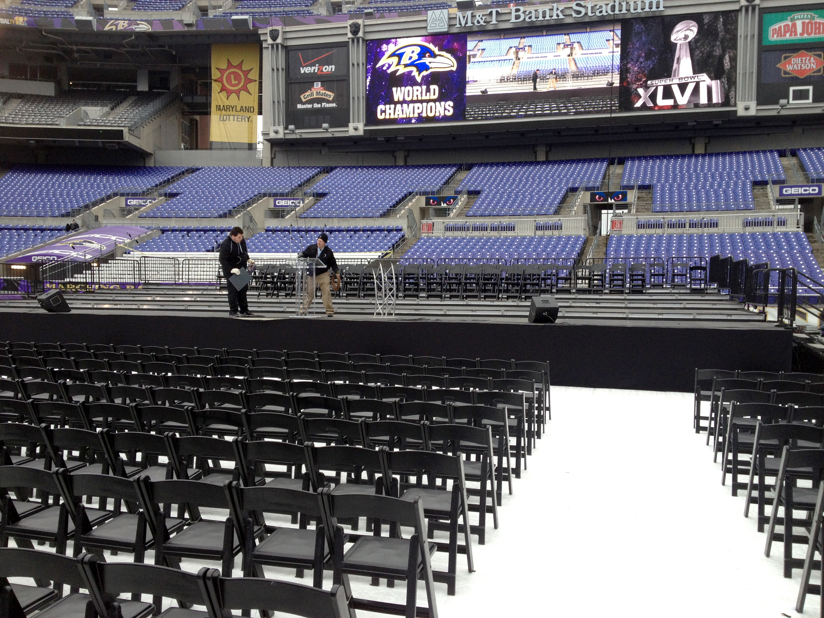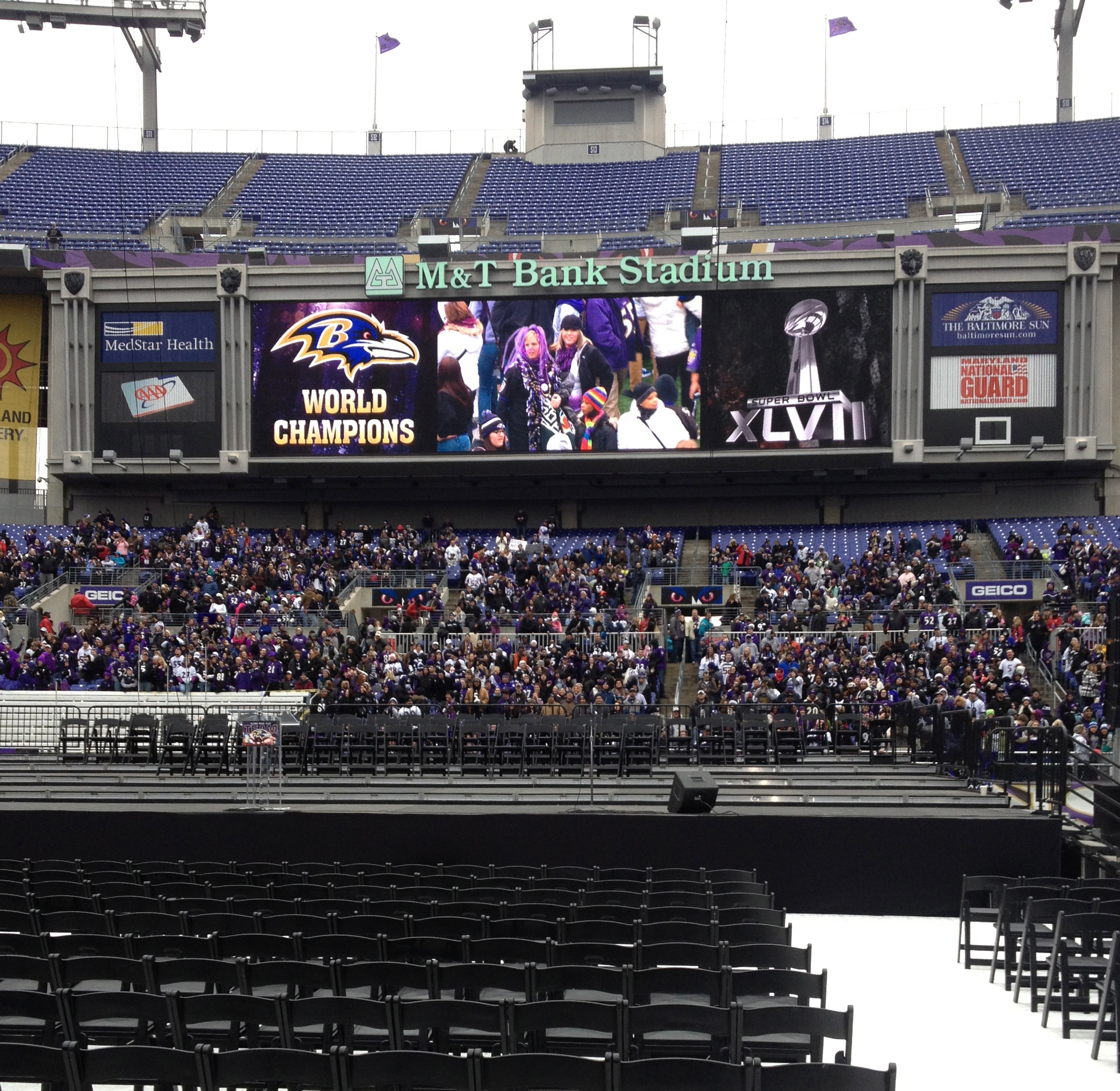 Mountain Productions traveled quickly to Baltimore to setup the staging inside of the M&T Bank Stadium for the Championship Parade. The equipment provided for the event included the following: