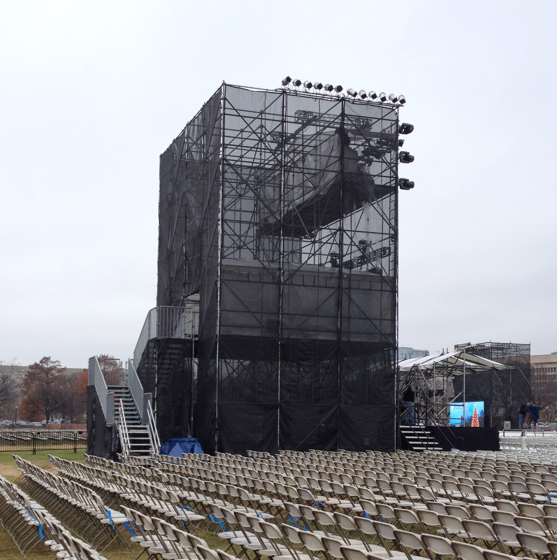 For the 3rd consecutive year, Mountain Productions proudly provided the staging for the 92nd Annual National Christmas Tree Lighting in Washington, DC. The ceremony welcomed Tom Hanks and Rita Wilson as the hosts of the 2014 event with musical performances by Fifth Harmony, Patti LaBelle, Ne-Yo and more. For this year’s tree lighting, Mountain Productions provided the main stage, an SL-320 mobile stage along with additional support structures.
